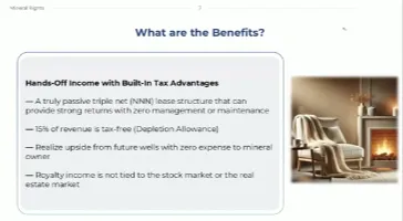 Disclaimer: Royalty income is not a fixed revenue stream and is subject to variable commodity prices and production volumes. Actual performance will vary. This is not a security, securitized, nor fractionalized investment or ownership. This is not financial nor tax advice. This content and any associated documents and videos are for general informational purposes only and does not constitute an offer to sell or a solicitation to buy.
